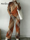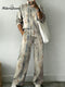 Geometric Lines Square Decorative Patterns Casual Stand Collar Long Sleeve Top And Elastic Waistband Pants