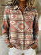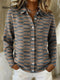 Gradient Geometric Zigzag Line Decorative Pattern Casual Shirt Collar Long Sleeve Sweater