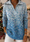 Gradient Mosaic Square Decorative Pattern Women's Casual Shirt Collar Long Sleeve Sweater