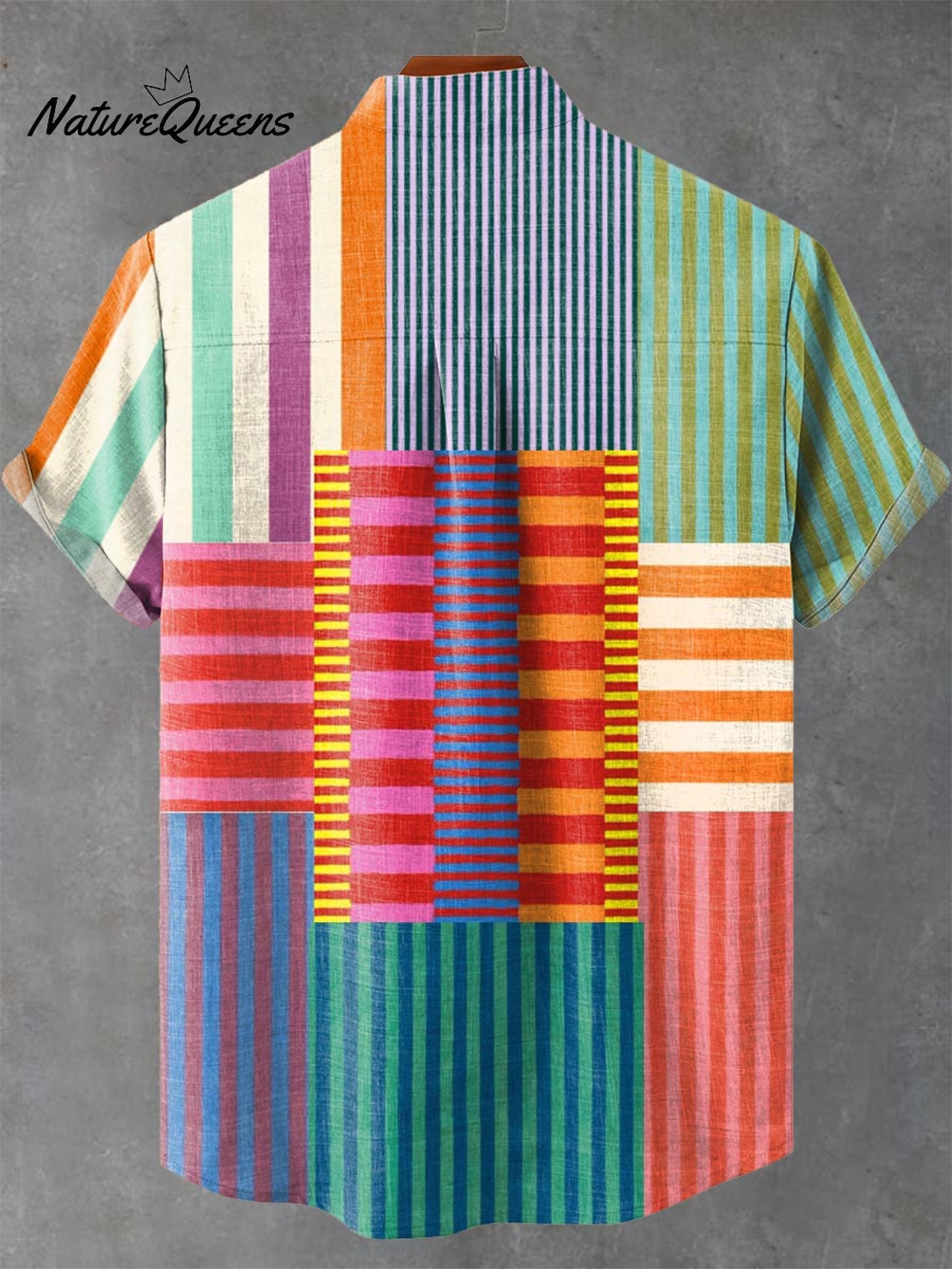 Men's Abstract Geometric Pattern Art Print Casual 100% Cotton Shirt