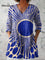 Modern Geometric Art Printed Women's Casual Linen V-Neck Shirt