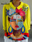 Oil Painting Freda Portrait Art Printed Women's Casual Cotton And Linen 3/4 Sleeve Shirt