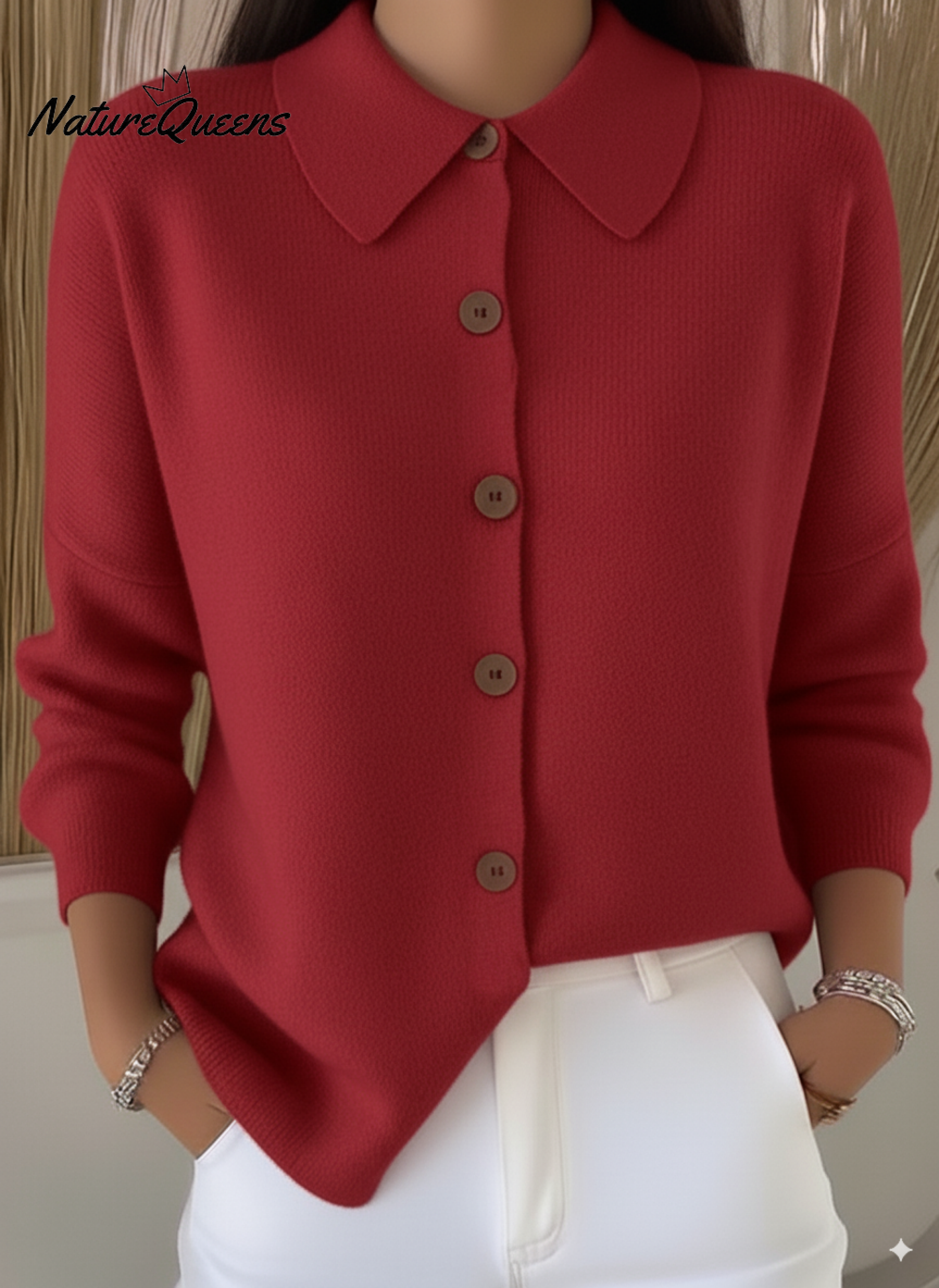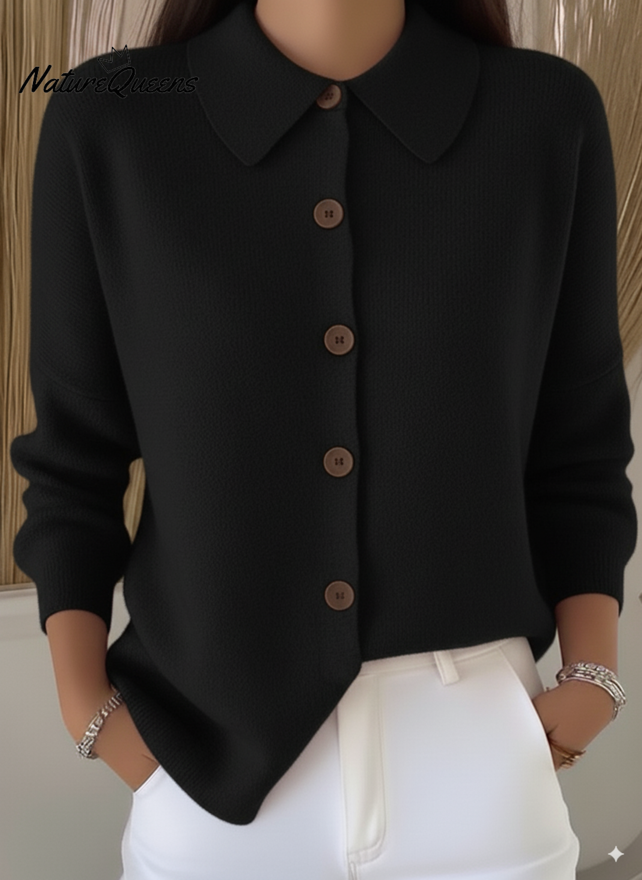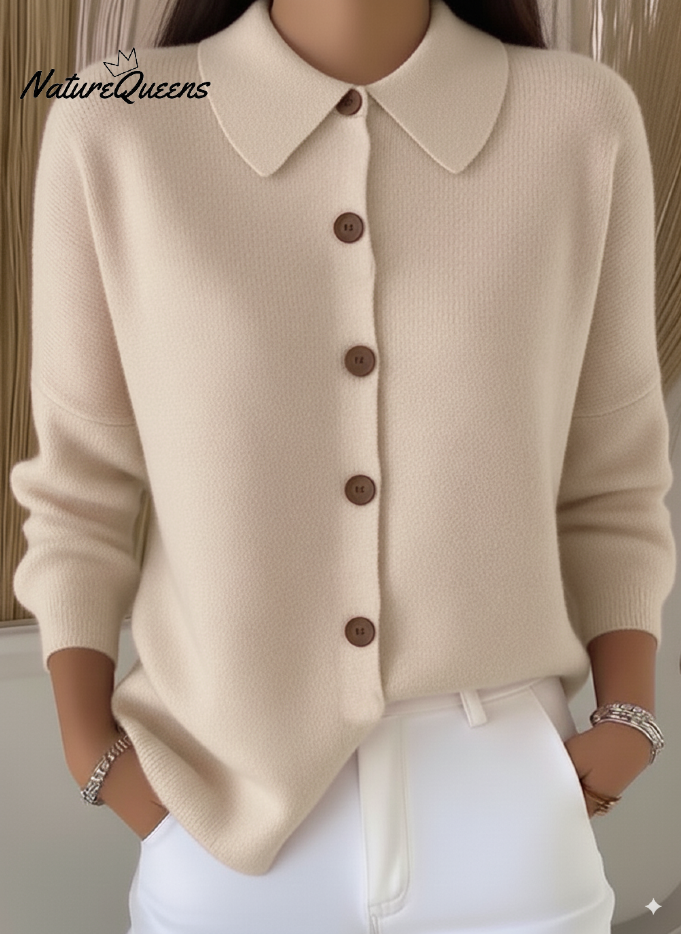 Peter Flip Soft Wool Collar Button-Down Cardigan Sweater Top