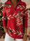 Retro Christmas Bell Snowflake Art Pattern Polo Collar Shiny Loose Sweater Top