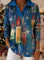 Retro Christmas Candle Art Pattern Polo Collar Shiny Loose Sweater Top