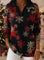 Retro Christmas Snowflake Art Pattern Polo Collar Shiny Loose Sweater Top