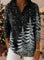 Retro Christmas Snowflake Art Pattern Polo Collar Shiny Loose Sweater Top