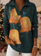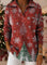 Retro Christmas Trees Snowflake Art Pattern Polo Collar Shiny Loose Sweater Top