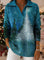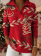 Retro Christmas Trees Snowflake Art Pattern Polo Collar Shiny Loose Sweater Top