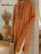 Retro Cozy Polo Collar Lantern Sleeve Linen Shirt Top