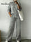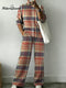 Simple Checkered Decorative Pattern Casual Stand Collar Long Sleeve Top And Elastic Waistband Pants