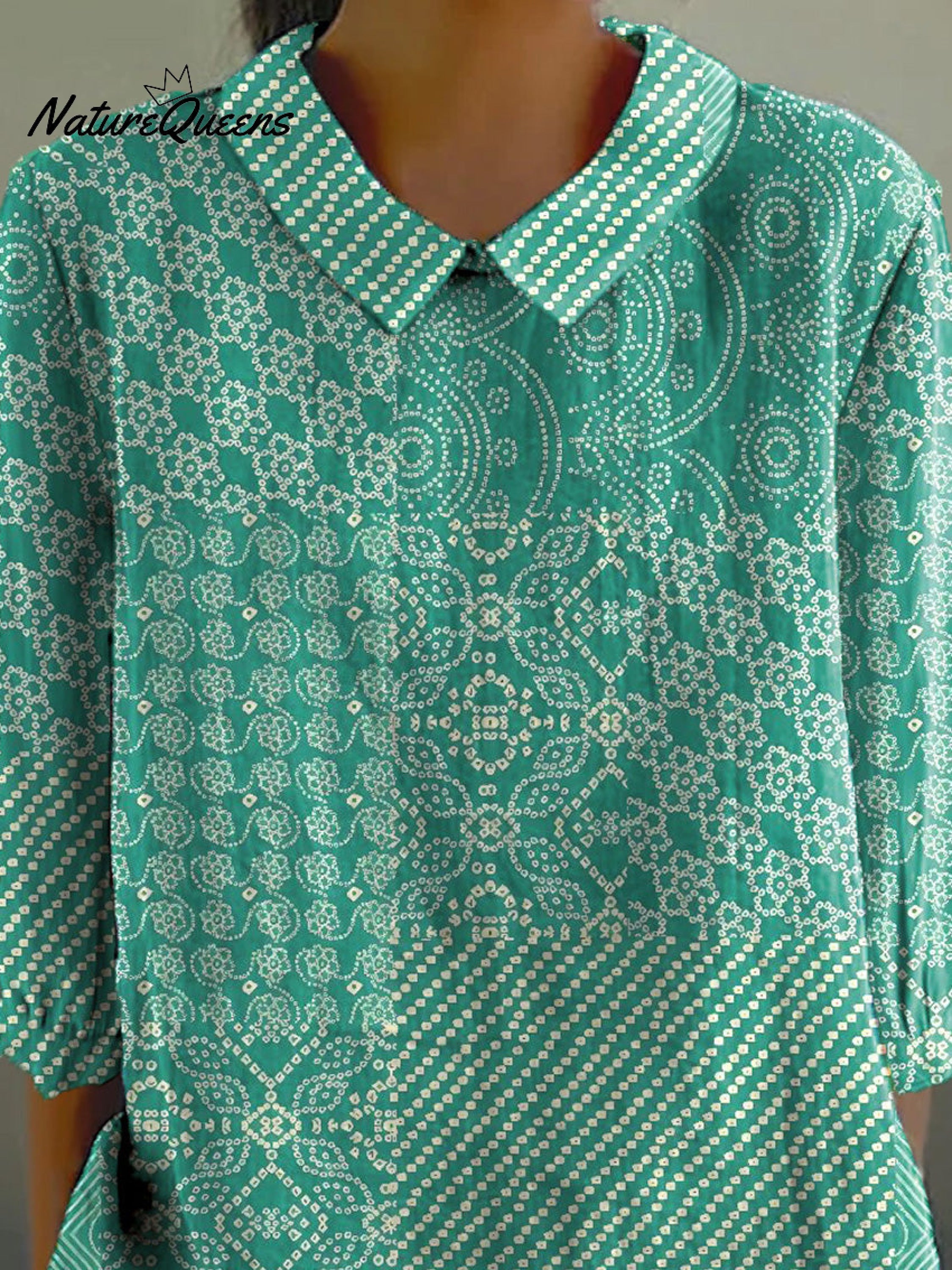 Simple Ethnic Pattern Printed Women's Casual Cotton And Linen 3/4 Sleeve Shirt