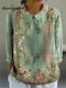Strip Patchwork Pattern Printed Women's Casual Linen V-Neck Shirt