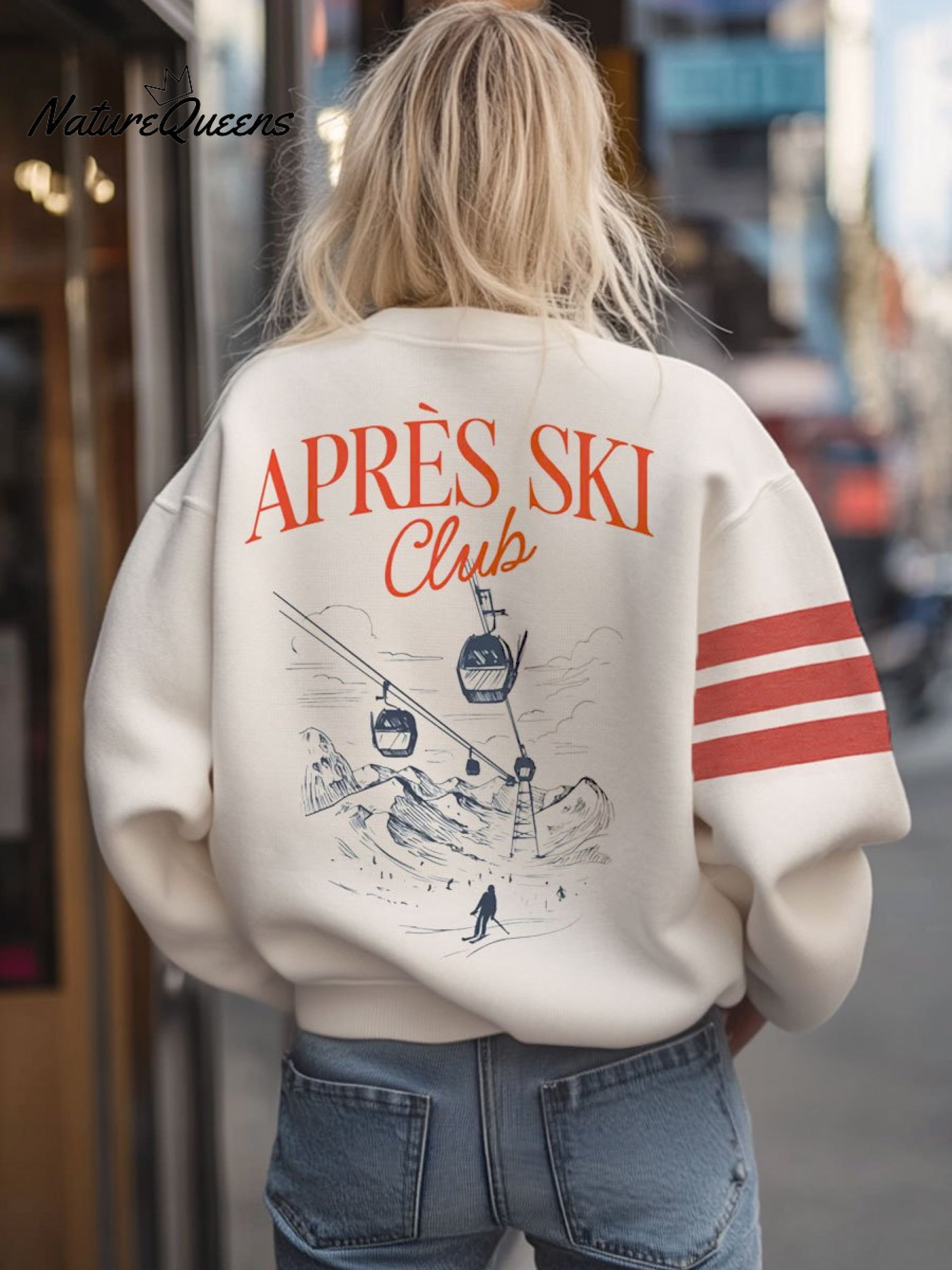 Vintage Apres Ski Print Casual Sweatshirt
