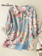 Women‘s Floral Embroidered Loose Linen Casual Shirt