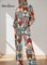 Women's Abstract Geometric Art Print Casual Knitted Cotton Top Pants Suit