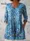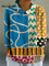 Women's Abstract Geometric Pattern Art Print Casual Cotton And Linen 3/4 Sleeve Shirt