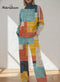Women's Abstract Pattern Art Print Casual Knitted Cotton Top Pants Suit