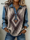 Women'S Casual Color-Block Printed Patchwork Pullover Sweatshirt