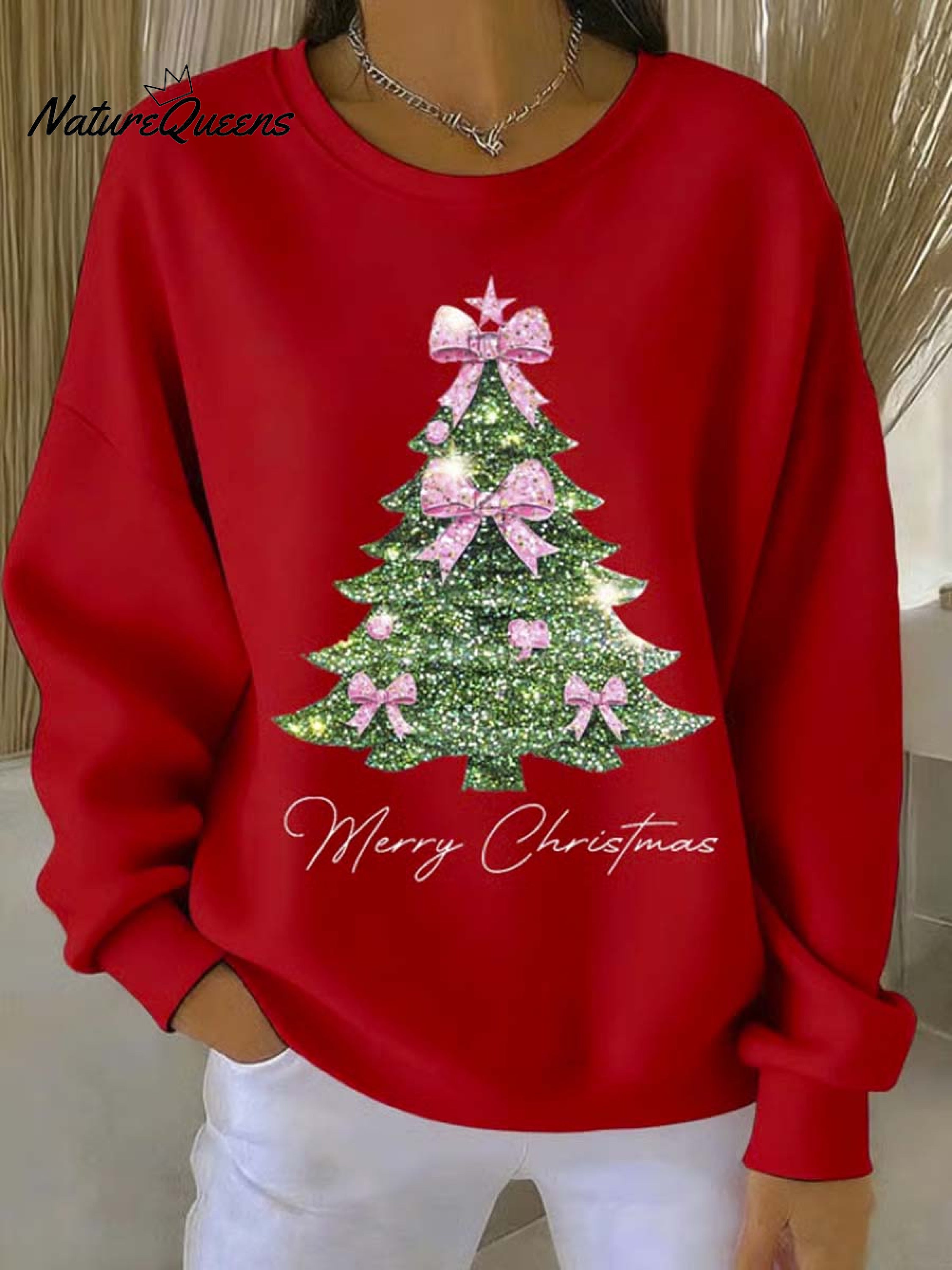 Women's Christmas Tree Art Print Casual Sweatshirt