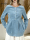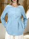 Women's Color-blocked Print V-neck Long-sleeve Casual Loose Cotton Top