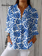 Women's Colorful Abstract Dot Art Print Casual Linen V-neck Shirt