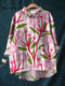Women's Colorful Flowers Print Casual Cotton And Linen 3/4 Sleeve Shirt