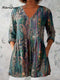 Women's Elegant Peris Pattern Crew Neck Cotton and Linen Top