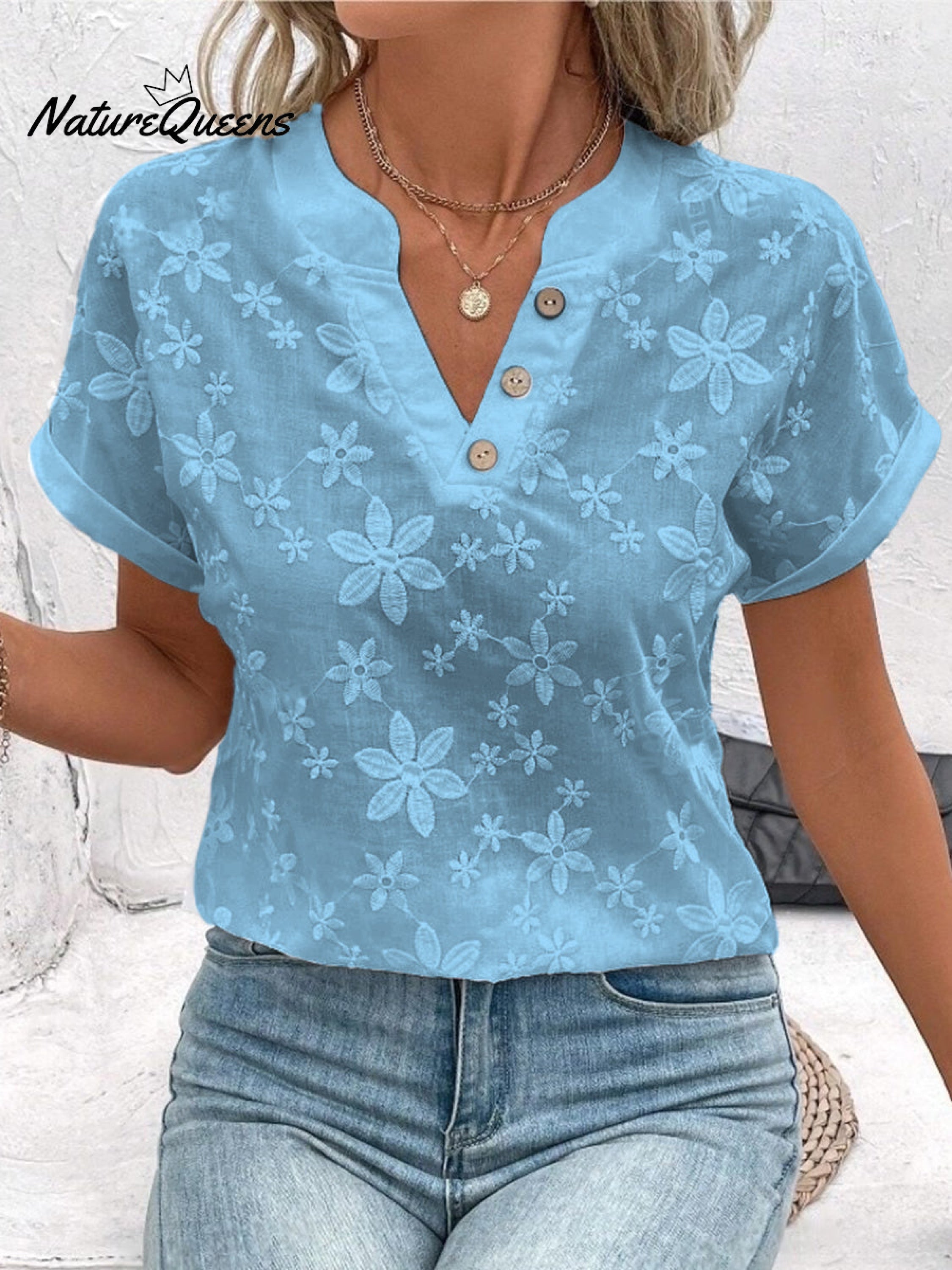 Women's Embroidered Lace Short-sleeved Cotton Shirt
