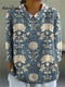 Women's Ethnic Geometric Print V-neck Cotton and Linen Top