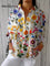 Women's Floral Art Print Casual Linen V-neck Shirt