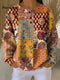 Women's Floral Pattern Art Print V-neck Casual Cotton T-shirt