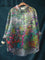 Women's Flower Abstrct Painting Art Print Casual Cotton And Linen Shirt