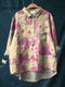 Women's Funny BullArt Print Casual Cotton And Linen Shirt