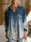 Women's Gradient Collared Long-Sleeved Casual Loose Cotton Shirt