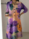 Women's Line Drawing Floral Decorative Patterns Shirt Collar Long Sleeve Dress