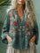 Women's Linen Bohemian Flower Printed Casual Long-sleeve Top Shirt