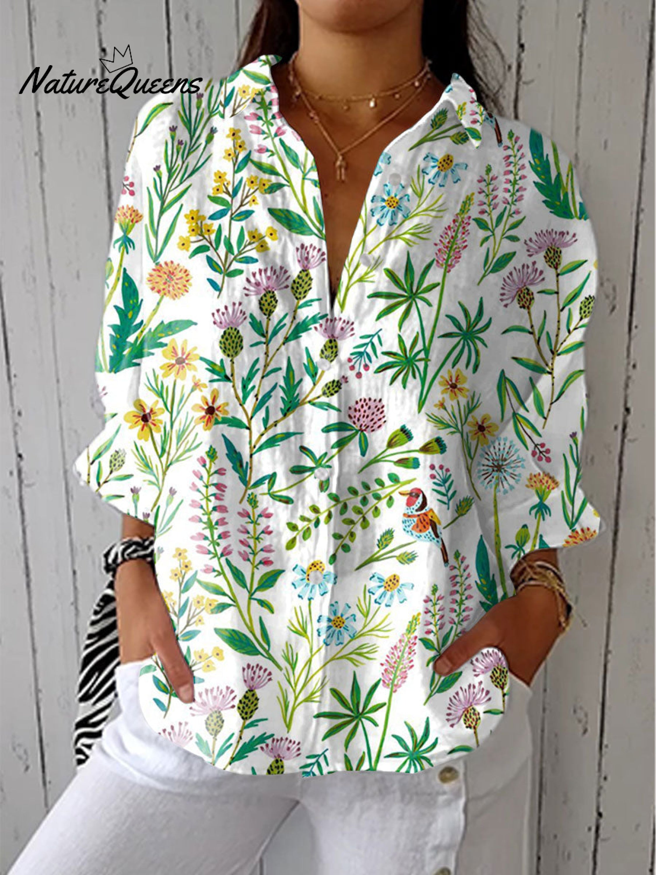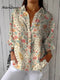 Women's Pastoral Floral Art Print Casual Linen V-neck Shirt