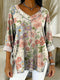 Women's Retro Gradient Flowers Floral Art Patterns Casual Washed Denim Cotton Top