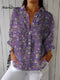 Women's Simple Color Block Art Print Casual Cotton And Linen 3/4 Sleeve Shirt