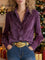 Women's Solid Color Collared Ruffled Long-sleeved Casual Loose Faux Suede Shirt