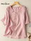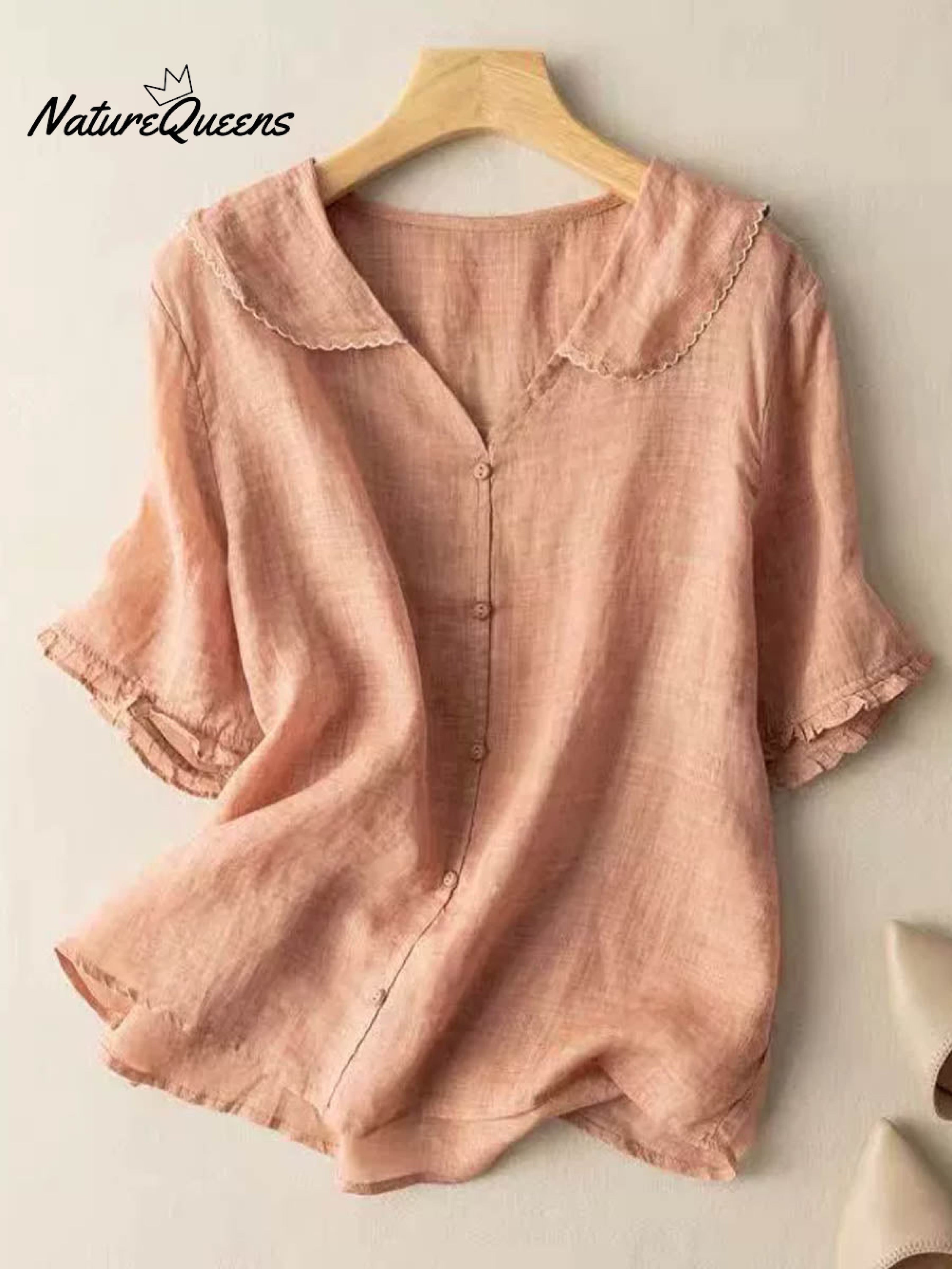 Women's Solid Color Peter Pan Collar Casual Linen Half Sleeve Shirt