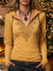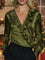 Women's Solid Color V-neck Ruffled Long-sleeved Casual Loose Satin Top