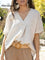 Women's Solid Color V-neck Short-sleeved Casual Loose Cotton And Linen Top