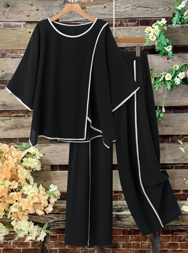Women's Spring New Arrival Round Neck 3/4 Sleeve Casual Loose Cotton Top And High Waist Casual Loose Wide-leg Cotton Pants Set