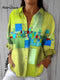 Women's Vintage Abstract Geometry Art Print Casual Linen V-neck Shirt