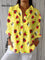 Women's Vintage Abstract Insect Art Print Casual Linen V-neck Shirt