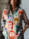 Women's Vintage Flower Art Print Casual Cotton And Linen Shirt