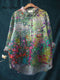 Women's Vintage Flower Print Casual Cotton And Linen Shirt