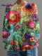Women's Vintage Flower Tree Art Print Casual Cotton And Linen Ruffle Shirt